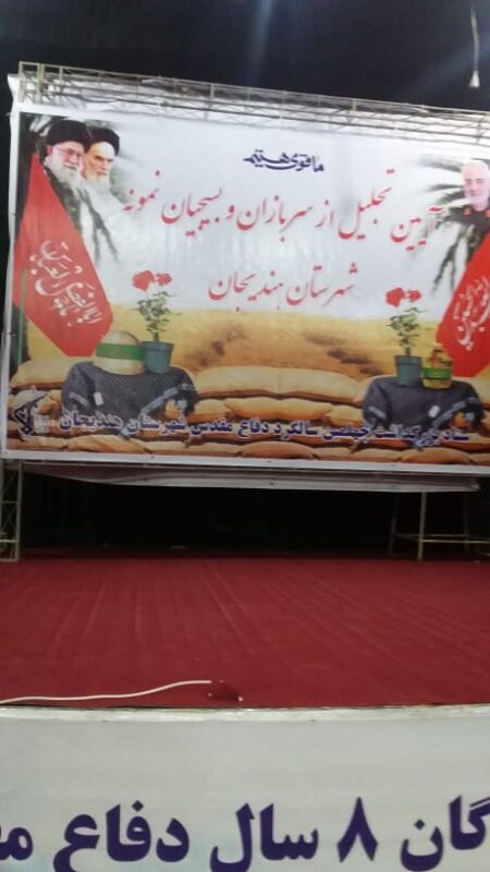 به گزارش خبرنگار دیدگاه نیوز از شهرستان هندیجان در دومین روز هفته دفاع مقدس سرگرد پاسدار قاسمی خشاب فرمانده نیروی مقاومت سپاه پاسداران هندیجان در این باره اظهار کرد: در راستای ارج نهادن شان و منزلت به سربازان و بسیجیان با توجه به فرمایشات مقام معظم رهبری حضرت آیت الله خامنه ای و همچنین ابلاغ ستاد کل نیروهای مسلح این روز تجلیل از سربازان نامگذاری شده در این مراسم که با حضور حجت الاسلام حسینی امام جمعه علی بویری فرماندار سرهنگ ابدالی فرد فرمانده نیروی انتظامی بسیجان و سربازان نیروهای نظامی و انتظامی دیگر مسئولین شهرستان در سالن اجتماعات سالن خلیج فارس برگزارشد. در پایان از ۱۲ تن سرباز و ۱۰ تن از نیروهای بسیج حوزه مقاومت تجلیل بعمل آمد.