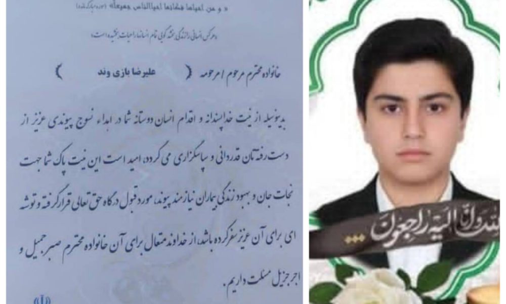 به گزارش دیدگاه نیوز، علیرضا بازیوند، دانشآموز ۱۵ ساله، با درگذشت نابهنگام خود، خانواده و اطرافیانش را در اندوهی عمیق فرو برد. فقدان این نوجوان، داغی سنگین بر دل پدر و مادر و بستگان او نشاند؛ اما در همان لحظههای سخت و ناباورانه، تصمیمی بزرگ و سرشار از انسانیت اتخاذ شد.