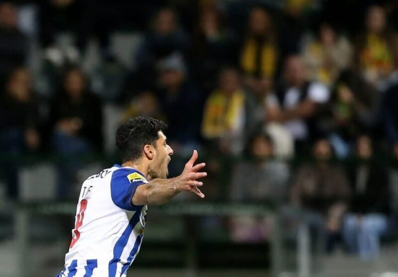 طارمی پس از زدن گل، لوگوی پورتو را هم بوسید و اینگونه علاقهاش به این تیم را نشان داد.