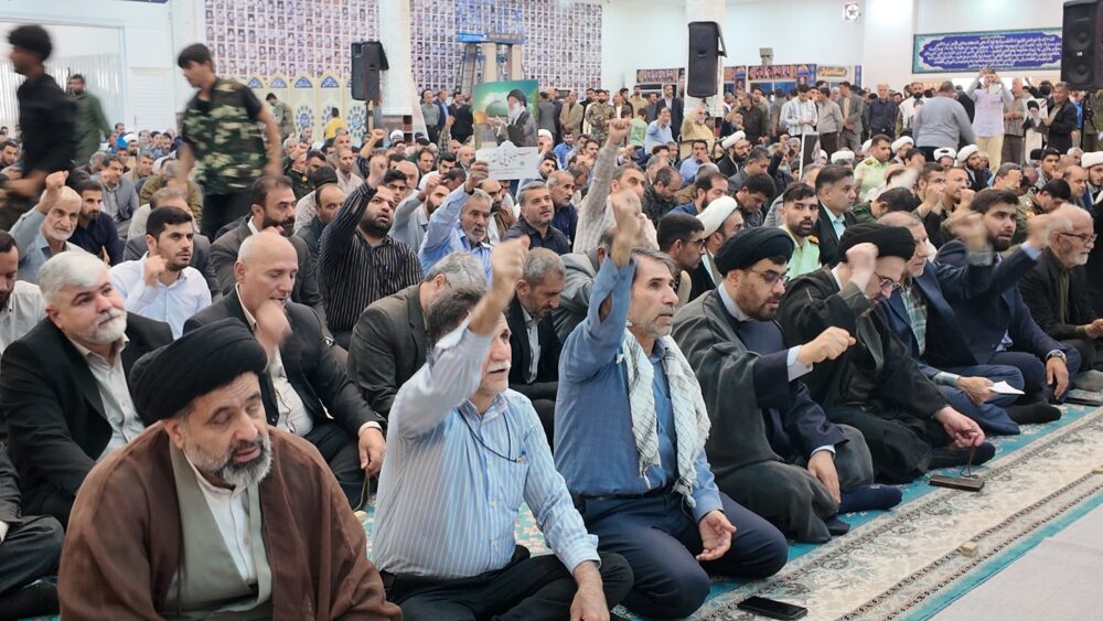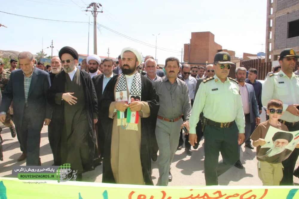 مومنان روزه دار با در دست داشتن پرچم های ایران و فلسطین و نیز پلاکاردهایی که عکس امام راحل و شهدا بر آن نقش بسته است، در این راهپیمایی حضور و علیه اسراییل و آمریکا شعار سر داده و حمایت خود را از آرمان های فلسیطن و آزادی فلسطین اشغالی اعلام کردند.