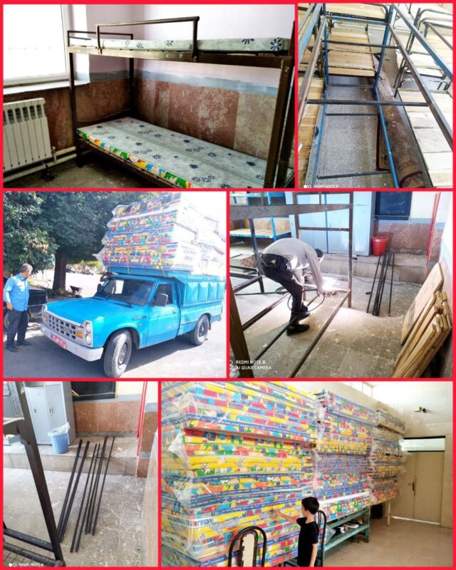 عظیمی گفت: این اقلام شامل ۱۳۰ عدد تشک، تعدادی تخته برای تخت خواب و اقداماتی از قبیل جوشکاری تخت خواب های خراب شده می باشد.