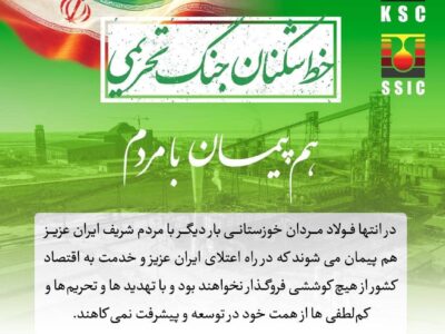 در انتها فولاد مردان خوزستانی بار دیگر با مردم شریف ایران عزیز هم پیمان می شوند که در راه اعتلای ایران عزیز و خدمت به اقتصاد کشور از هیچ کوششی فروگذار نخواهند بود و با تهدید ها و تحریمها و کملطفی ها از همت خود در توسعه و پیشرفت نمی کاهند.