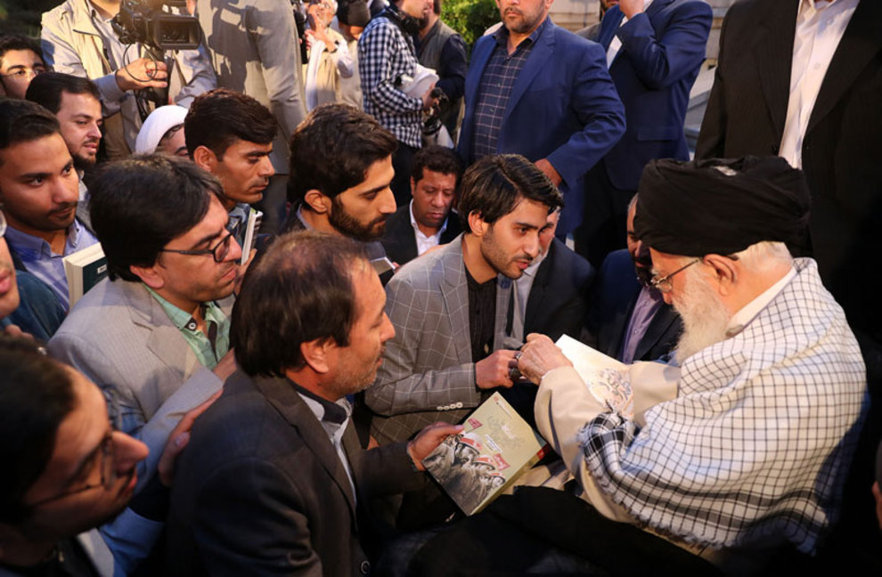 پیش از نماز مغرب و عشاء نیز تعدادی از شاعران از نزدیک با رهبر انقلاب اسلامی دیدار و گفتوگو و آثار خود را به ایشان تقدیم کردند..
