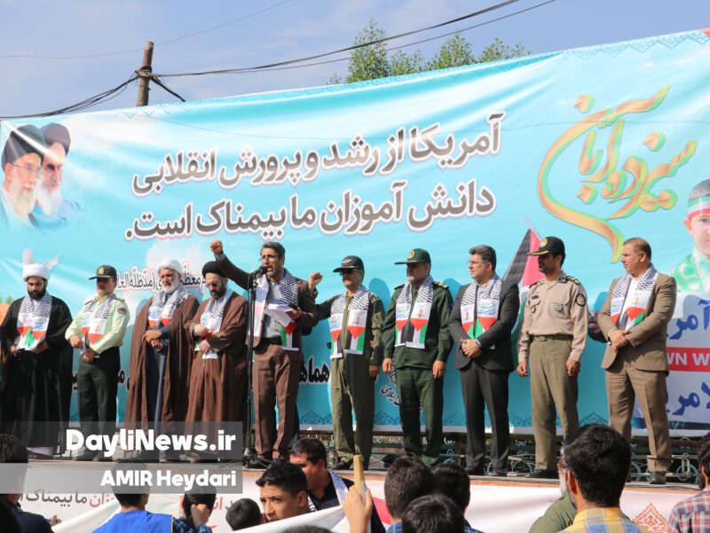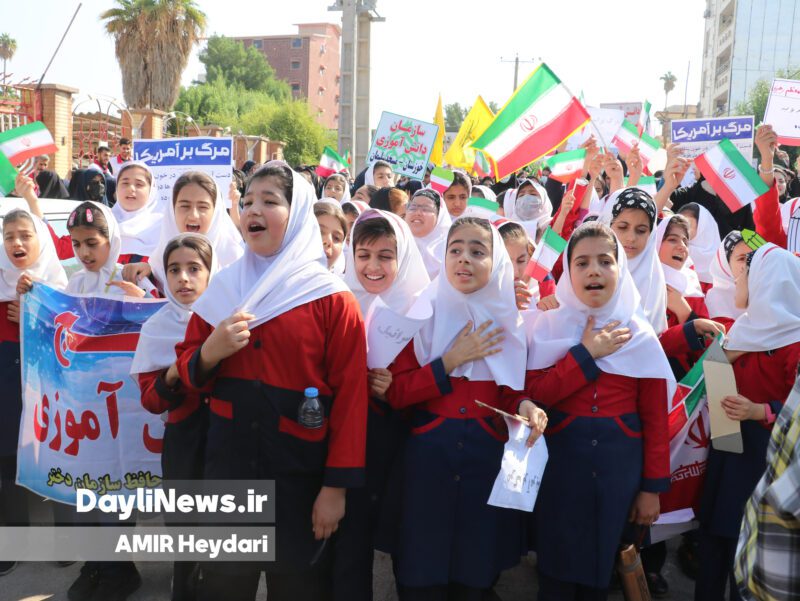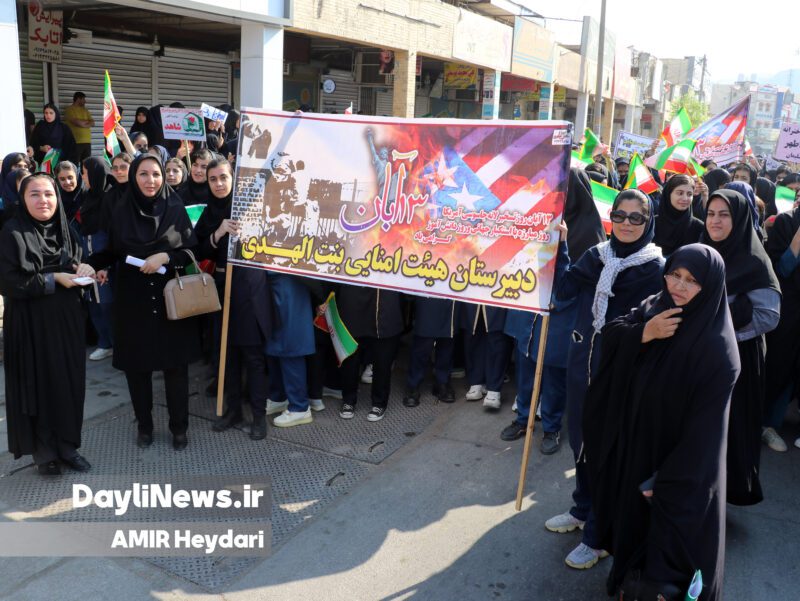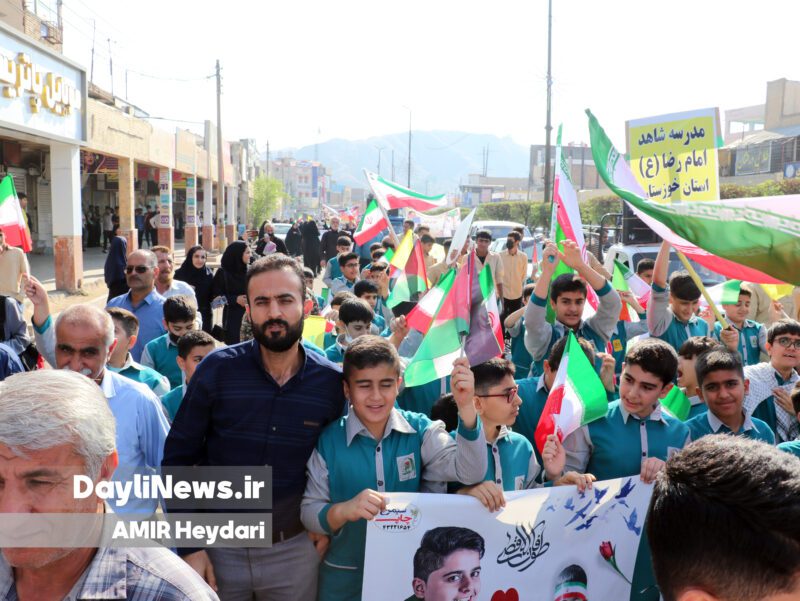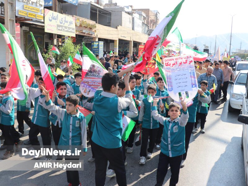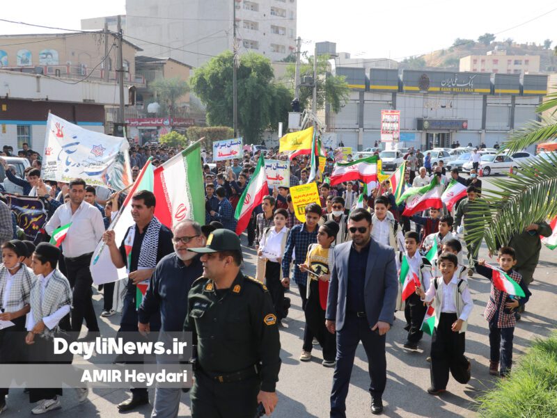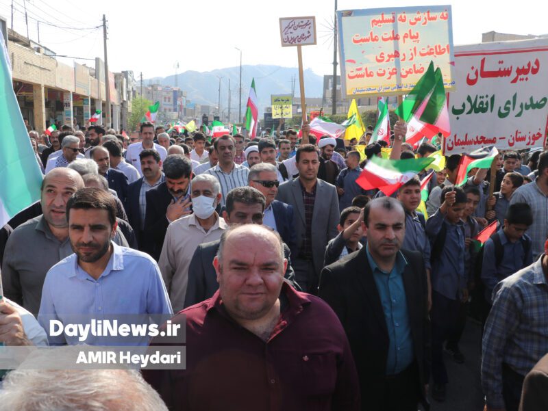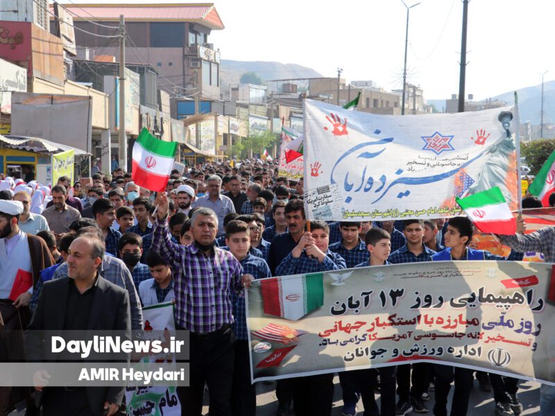 به گزارش دیدگاه نیوز، مراسم راهپیمایی ۱۳ آبان با حضور اقشار مختلف مردم، حجت الاسلام سید احمدی امام جمعه، آرش قنبری شهردار مسجدسلیمان، پیمان مولایی فرماندار، روحانیون، مسئولین اجرایی شهرستان، دانش آموزان، فرهنگیان، نیروهای نظامی و انتظامی و… امروز شنبه، سیزدهم آبان ماه همزمان با سراسر کشور در مسجدسلیمان برگزار شد.