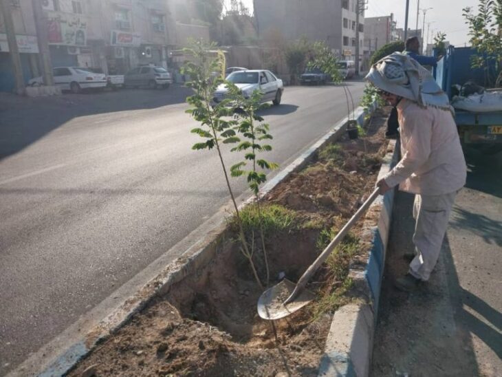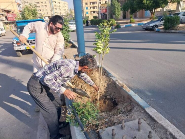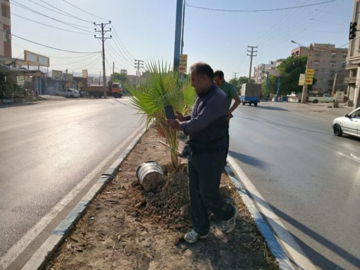 عملیات کاشت درخت در برخی بلوارهای سطح شهر مسجدسلیمان