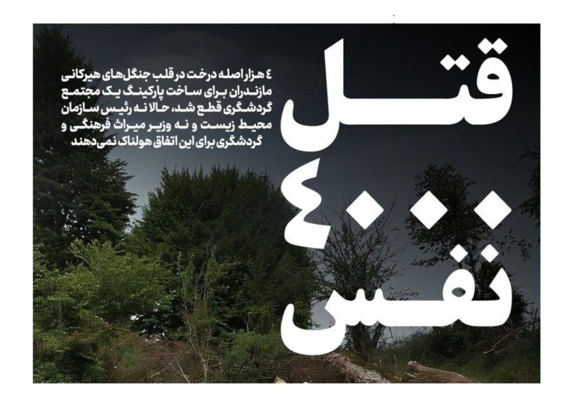 براساس اخبار منتشر شده، ۴ هزار اصله درخت در قلب جنگلهای هیرکانی مازندران برای ساخت پارکینگ یک مجتمع گردشگری قطع شد، حالا نه رئیس سازمان محیط زیست و نه وزیر میراث فرهنگی و گردشگری برای این اتفاق هولناک توضیحی نمیدهند.