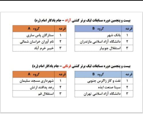 به گزارش دیدگاه نیوز، مراسم قرعهکشی بیست و پنجمین دوره رقابتهای لیگ برتر کشتی آزاد و فرنگی با حضور محمد خسروی شهردار مسجدسلیمان در سالن فدراسیون کشتی برگزار شد و تیمها در گروههای خود قرار گرفتند.