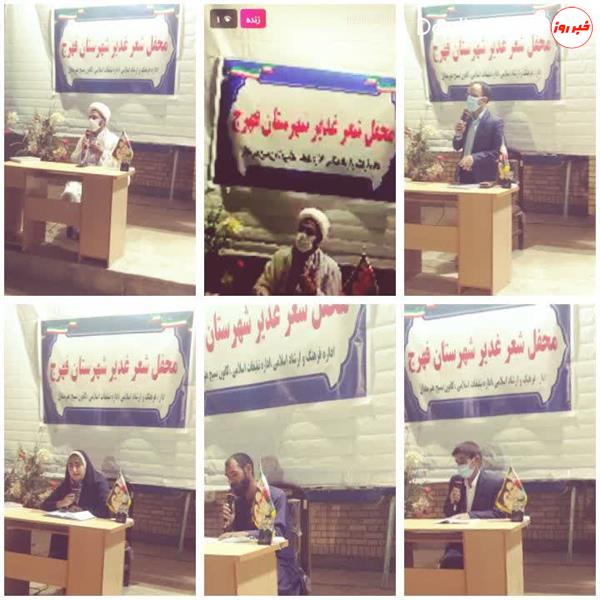 به گزارش دیدگاه نیوز ، در این مراسم که امام جمعه، رییس اداره تبلیغات،رئیس اداره فرهنگ و ارشاد اسلامی، مسئول ستاد نمازجمعه و مسئول بسیج هنرمندان نیز حضور داشتند ۵ نفر از شعرای شهرستان در باب سیره حضرت امیرالمومنین علی علیه السلام اشعار خود را قرائت نمودند.