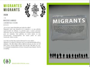 به گزارش خبرنگار خبرروز و به نقل از روابط روابط عمومی این فیلم، فیلم بلند تجربی ” مهاجران” به نویسندگی و کارگردانی مسعود احمدی در جشنواره بین المللی EL CINE SUMA PAZ International Film festival به نمایش در خواهد آمد و مورد داوری قرار میگیرد.
