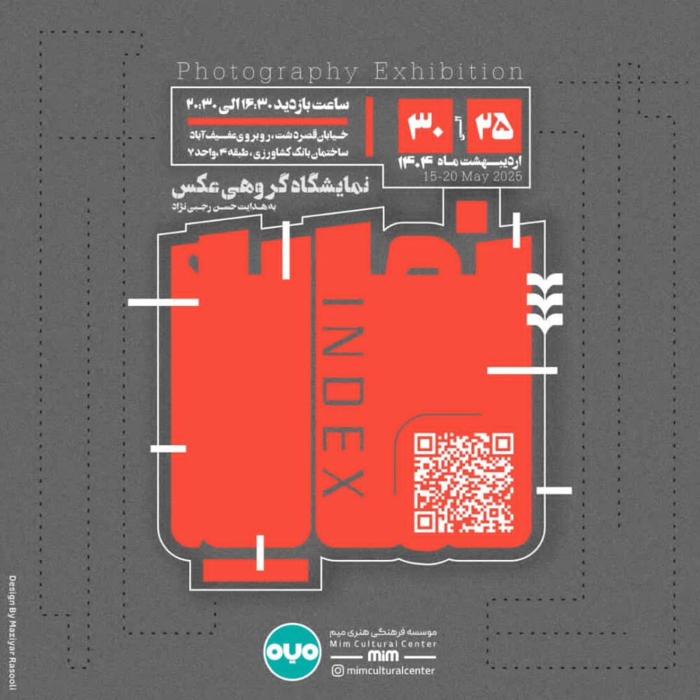 نمایشگاه «نمایه» تا پایان روز شنبه ۳۰ اردیبهشتماه ۱۴۰۴، همهروزه از ساعت ۱۶:۳۰ تا ۲۰:۳۰ پذیرای دیدار علاقهمندان و دوستداران هنر عکاسی خواهد بود.