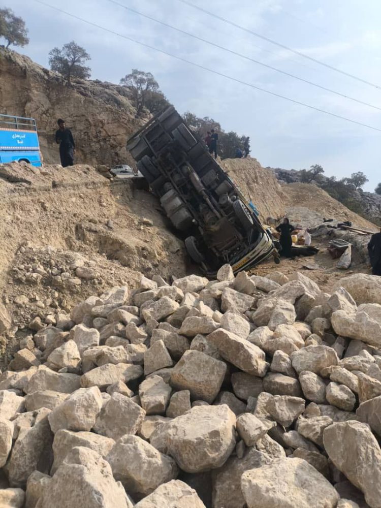 واژگونی کامیون در محور اندیکا – چهارمحال و بختیاری به دلیل خرابی جاده