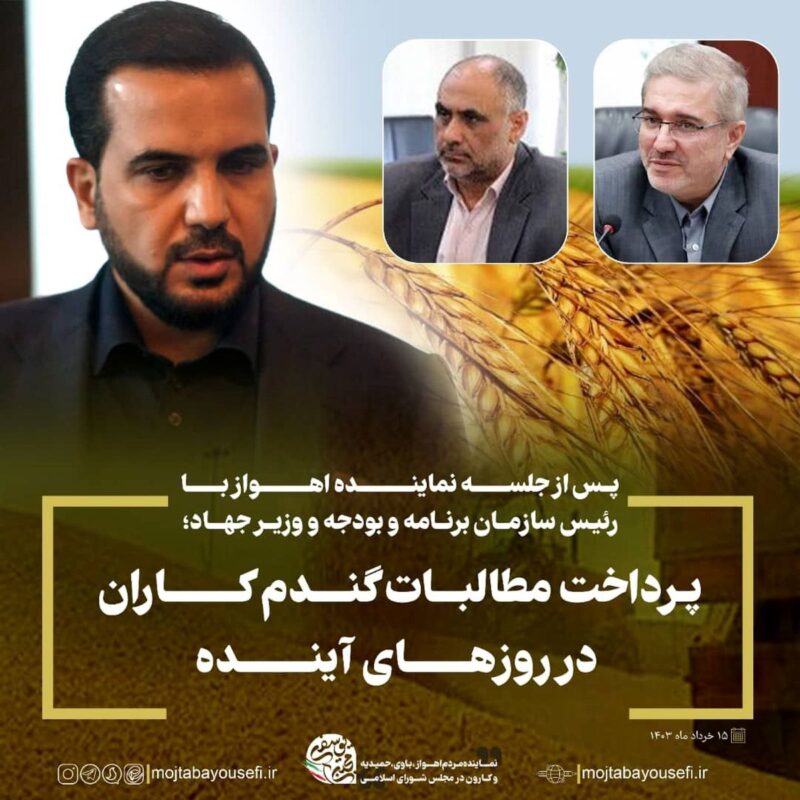 مهندس مجتبی یوسفی عنوان کرد:بر اساس پیگیری های انجام شده مقرر شد بخشی از مطالبات گندم کاران در روزهای آینده انجام شود.