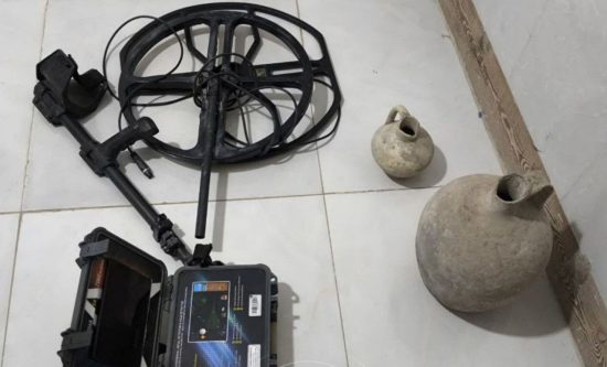 کشف دستگاه فلزیاب غیرمجاز و کوزه های تاریخی در بخش کندوان میانه
