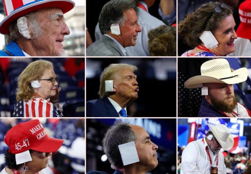 ادامه مطلبگوش های بانداژ شده به نشانه حمایت از ترامپ/ تصاویر