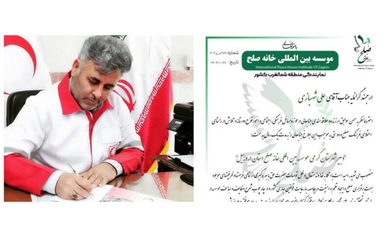 تقدیر دبیر موسسه بین المللی خانه صلح اردبیل از ناصر غلامی هوجقان