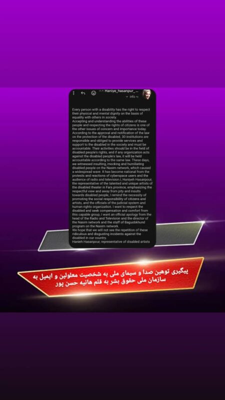 ادامه مطلبپیگیری توهین صدا و سیما به معلولین
