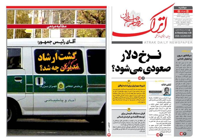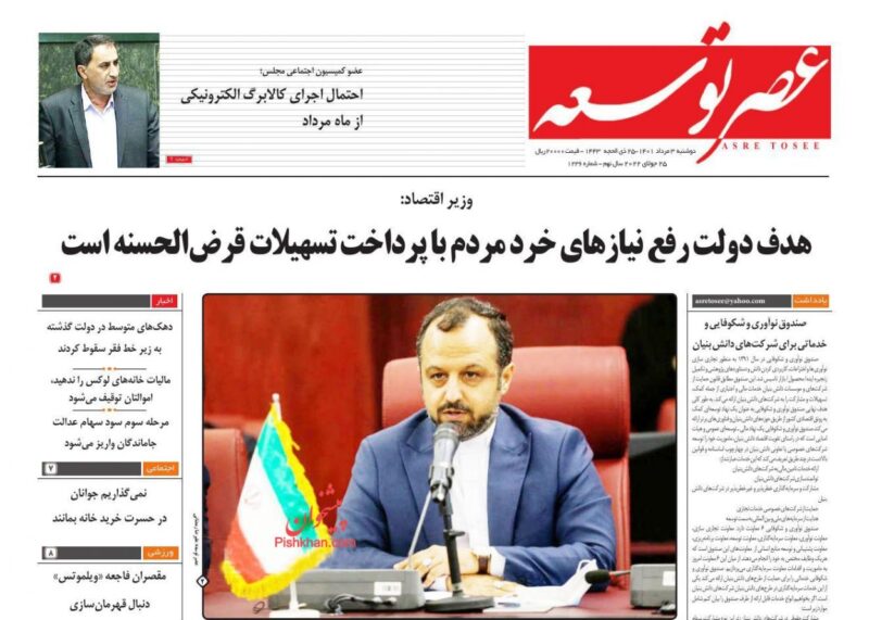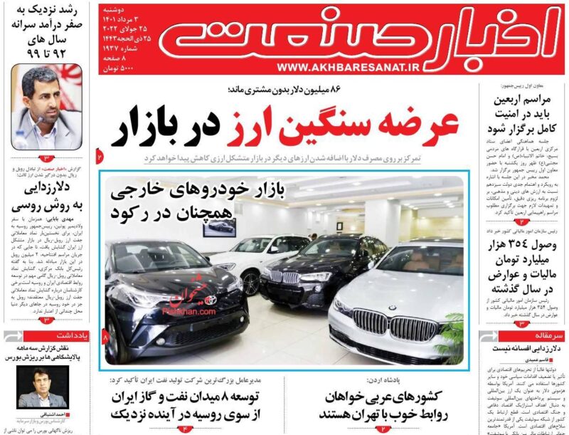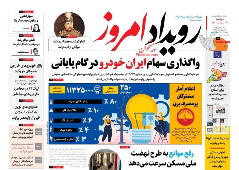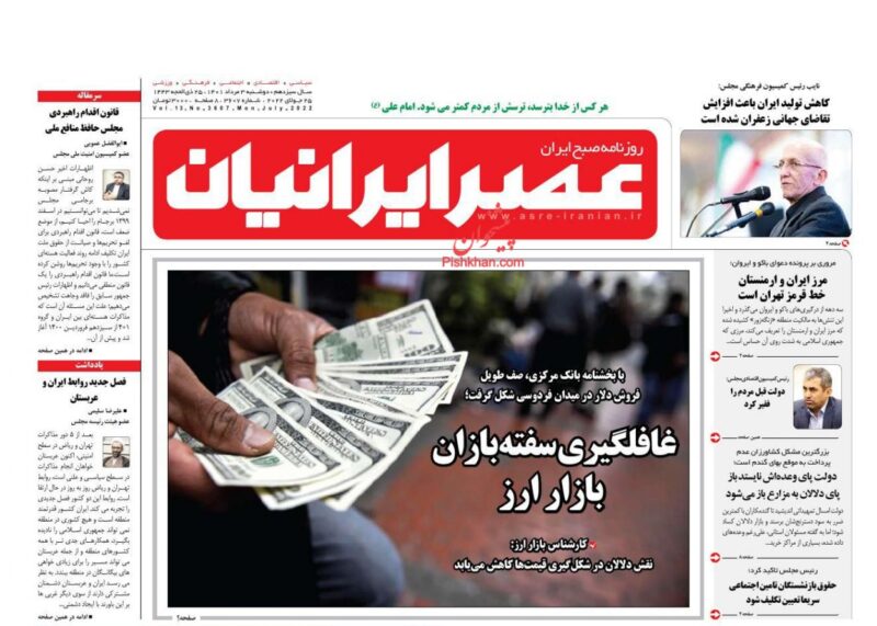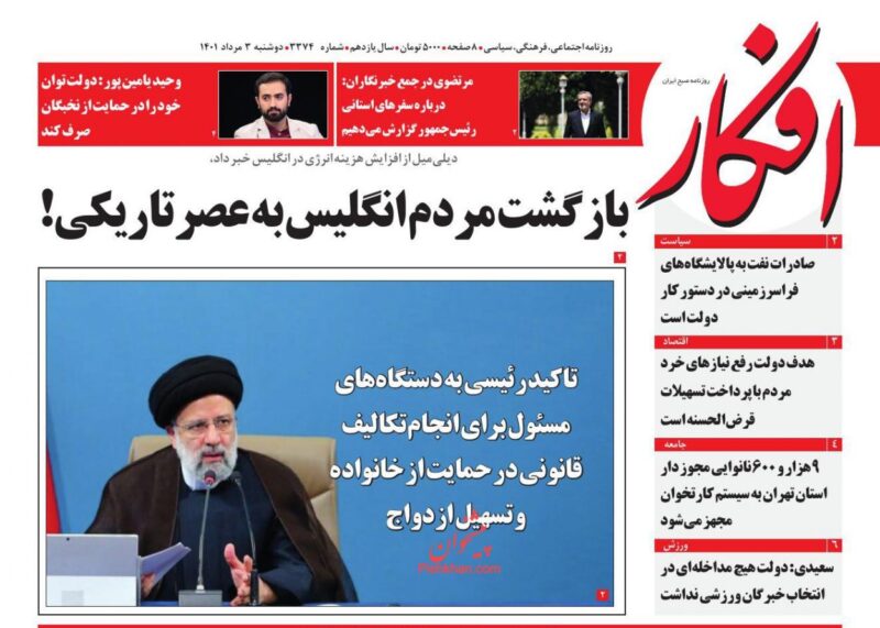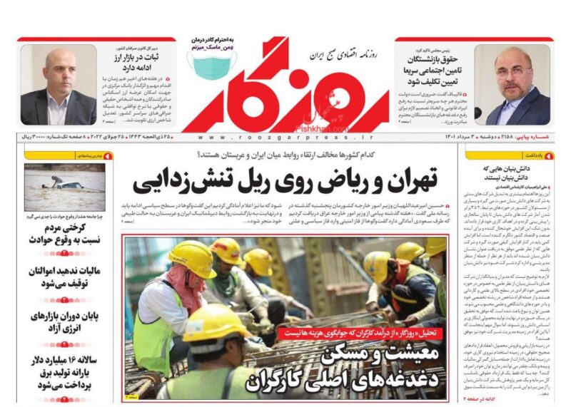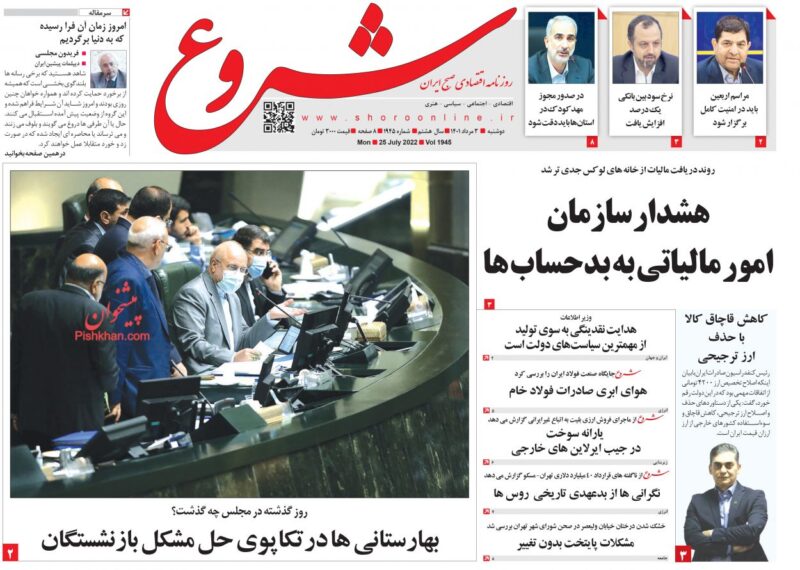 عناوین روزنامه های دوشنبه ۳ مرداد ۱۴۰۱