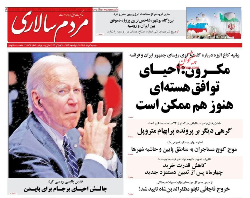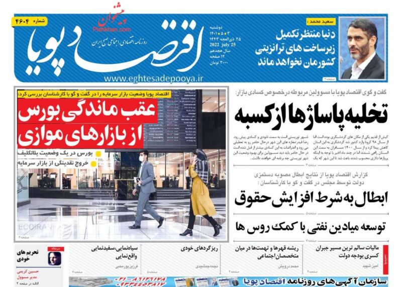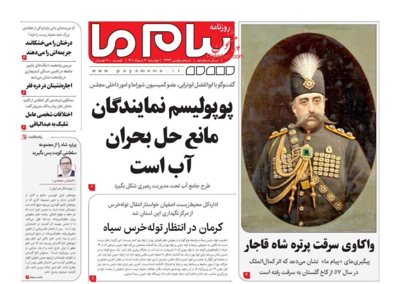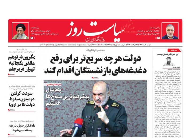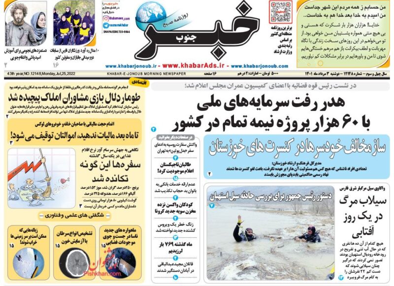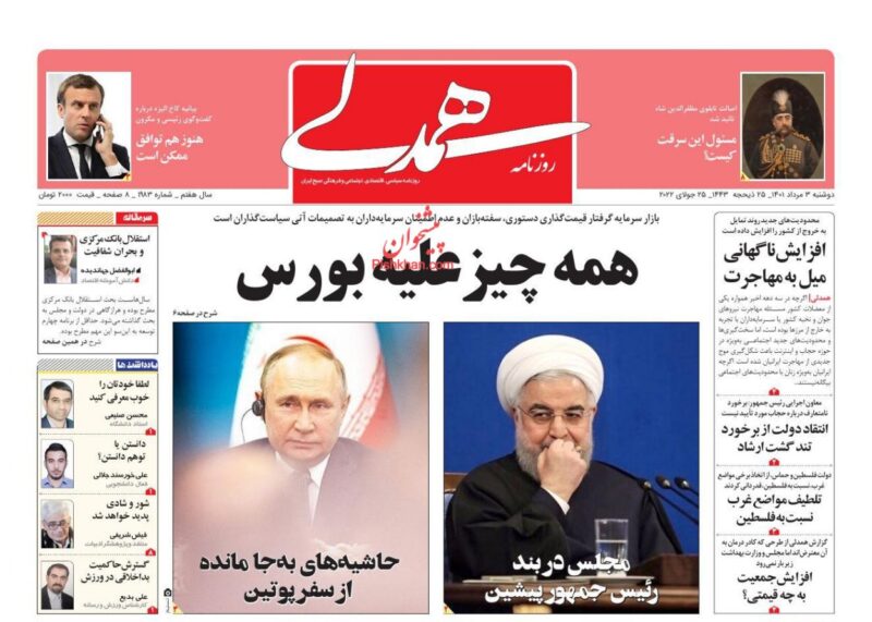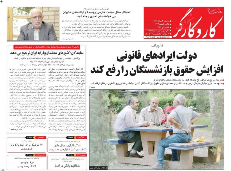 عناوین روزنامه های دوشنبه ۳ مرداد ۱۴۰۱