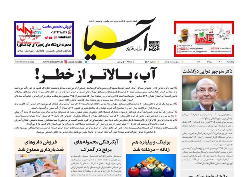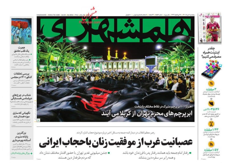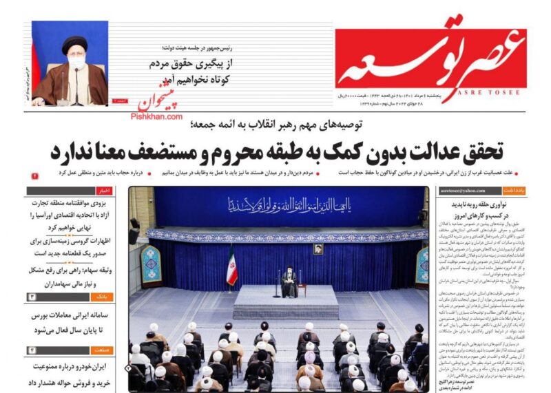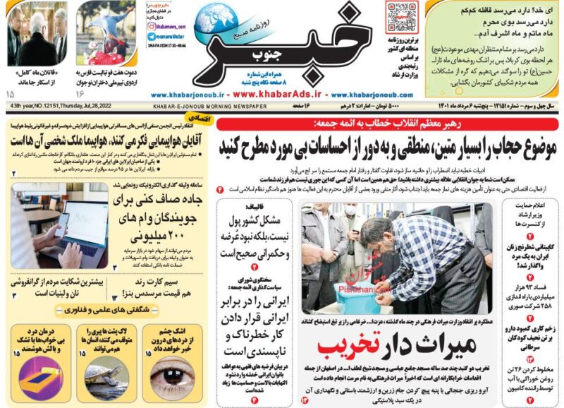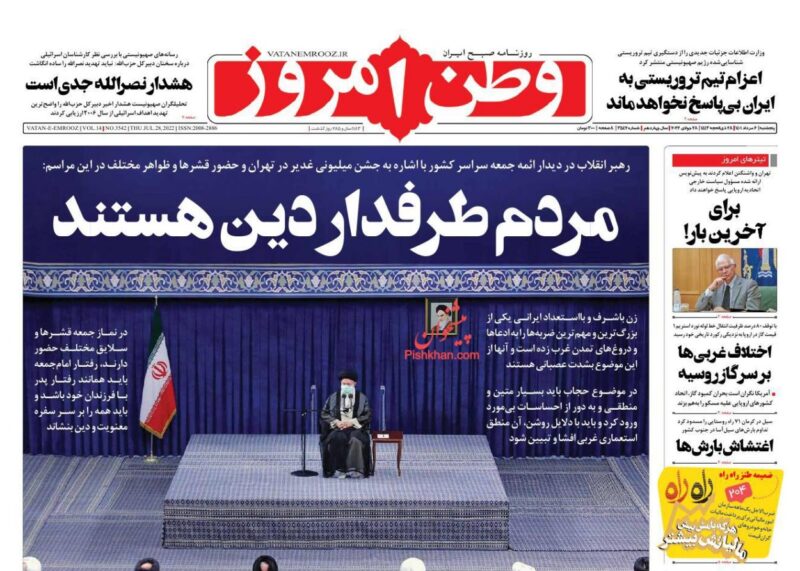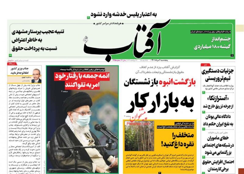 عناوین روزنامه های پنج‌شنبه ۶ مرداد ۱۴۰۱