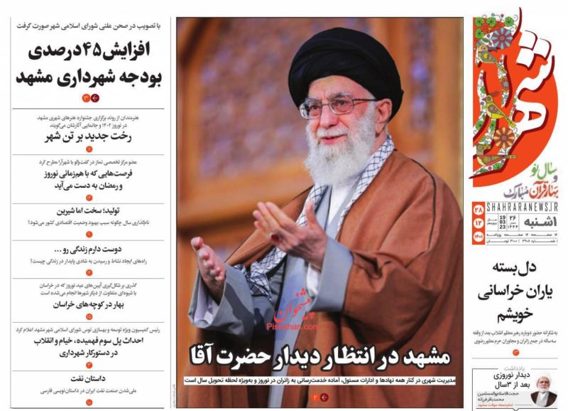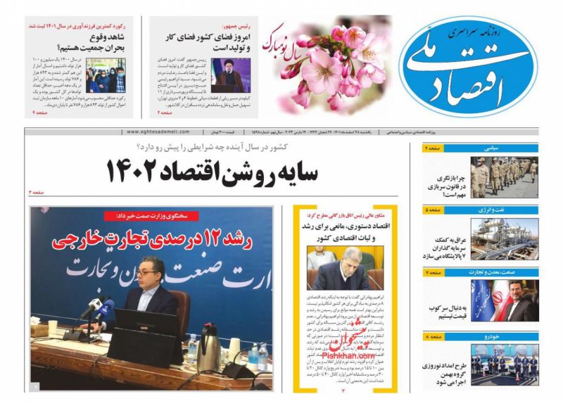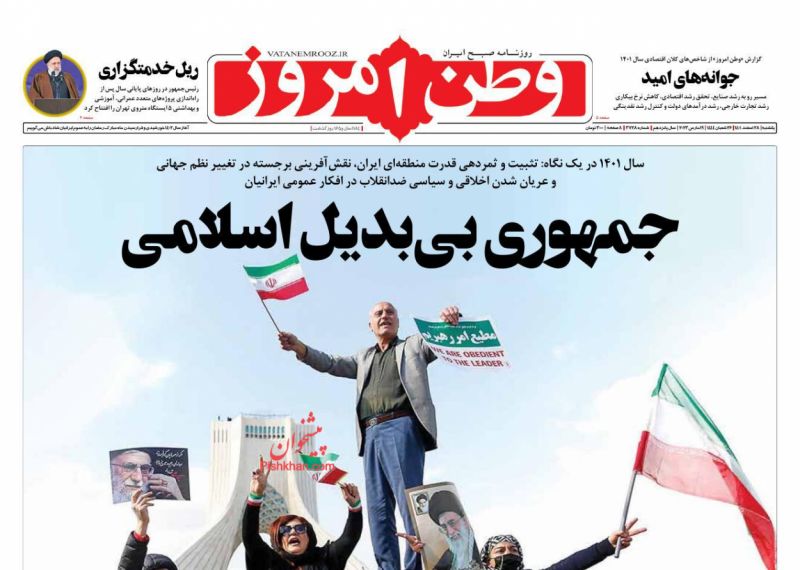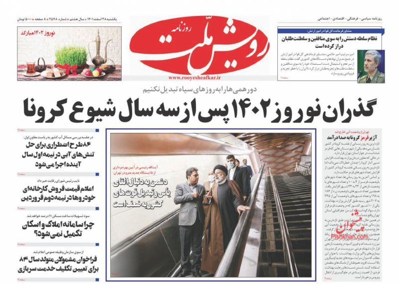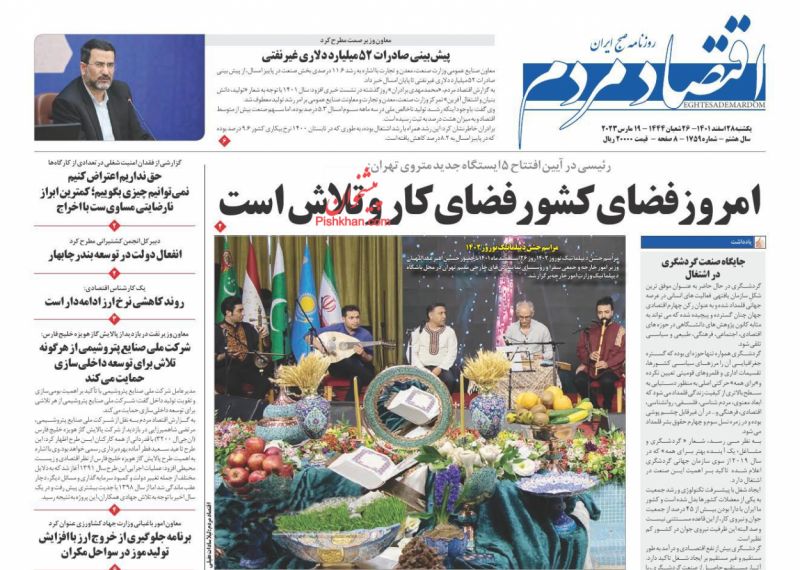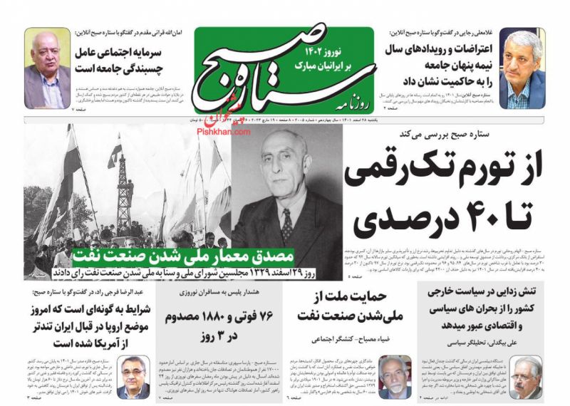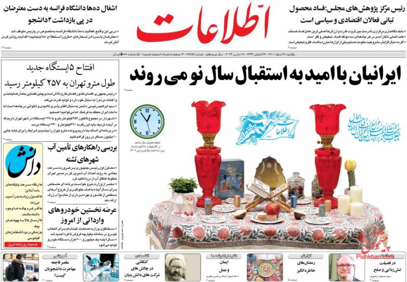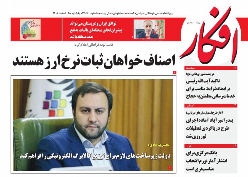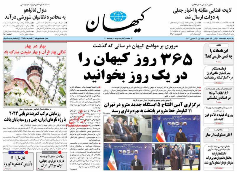 عناوین روزنامه های یکشنبه ۲۸ اسفند ۱۴۰۱