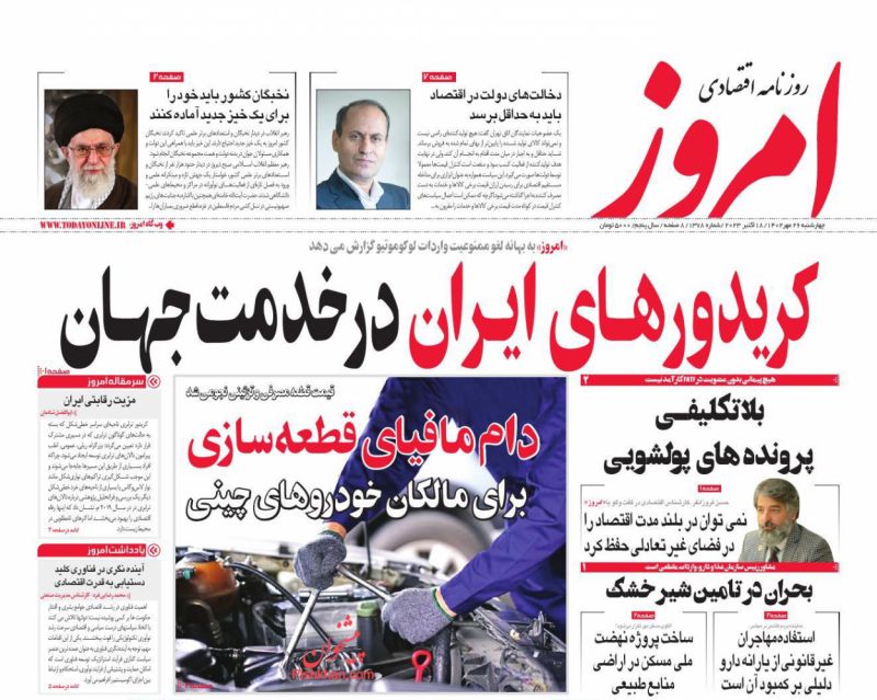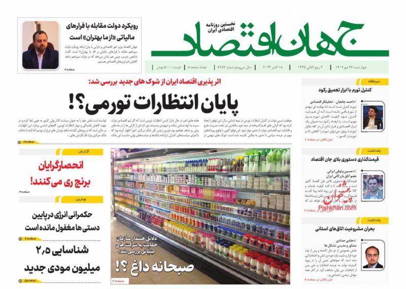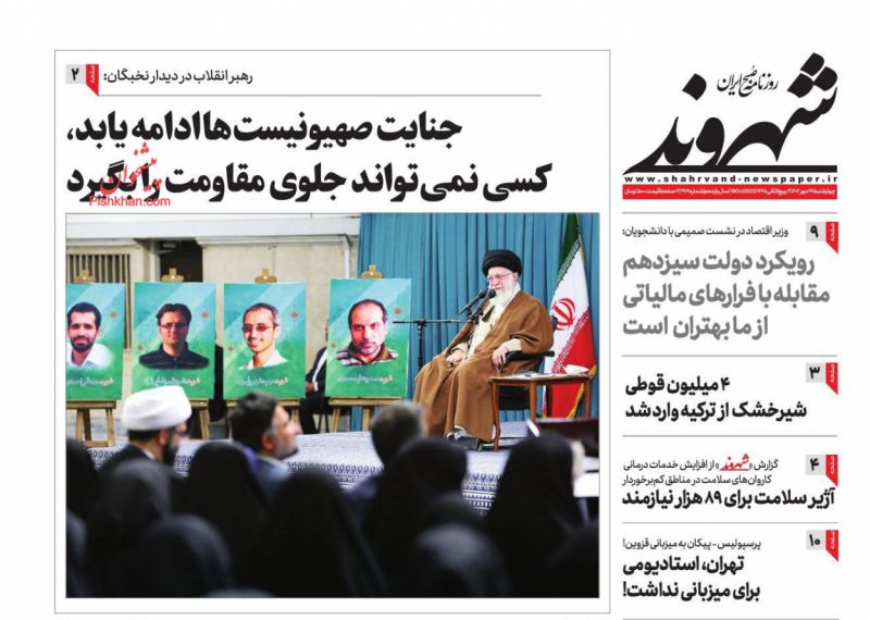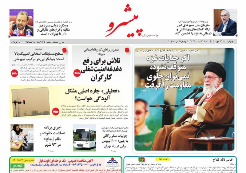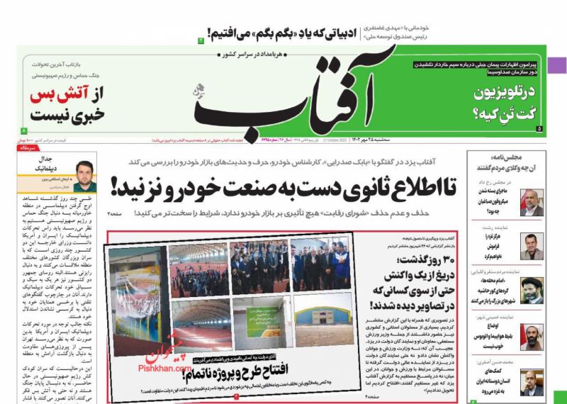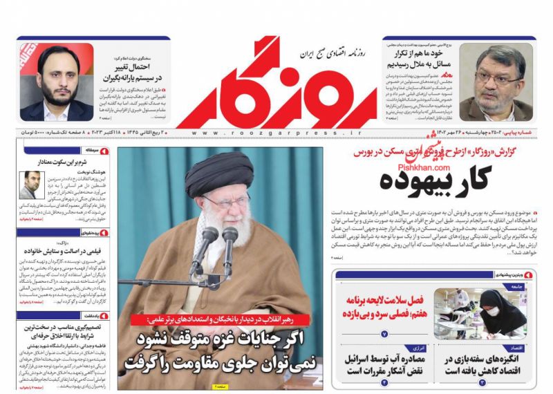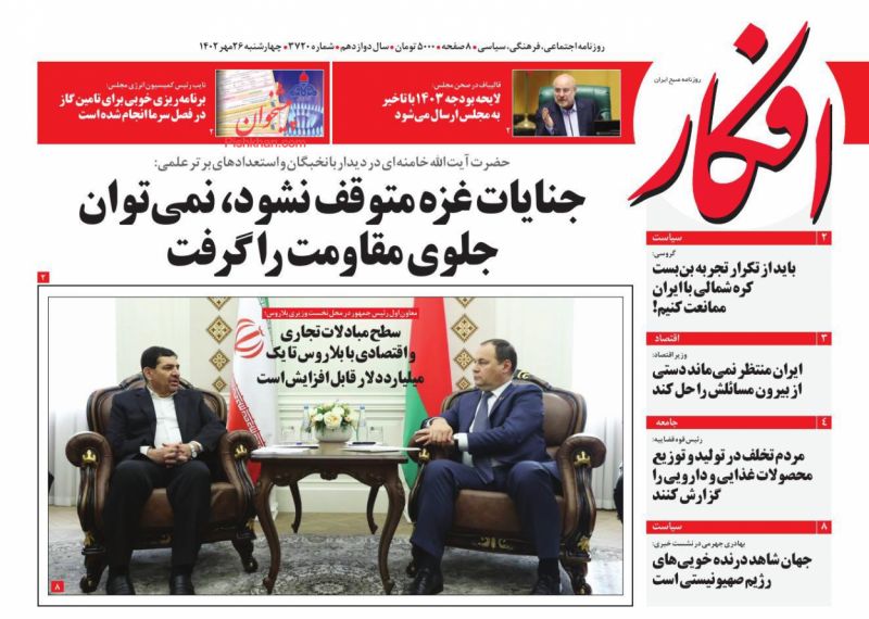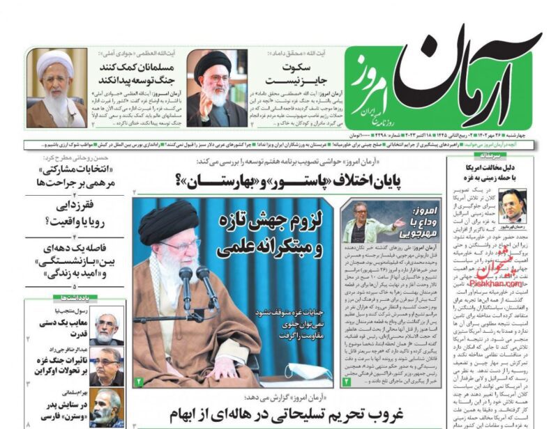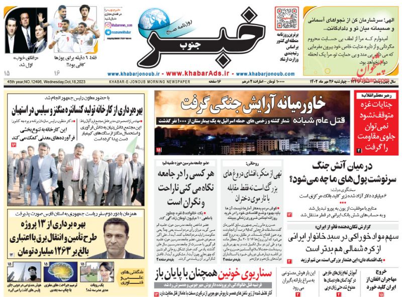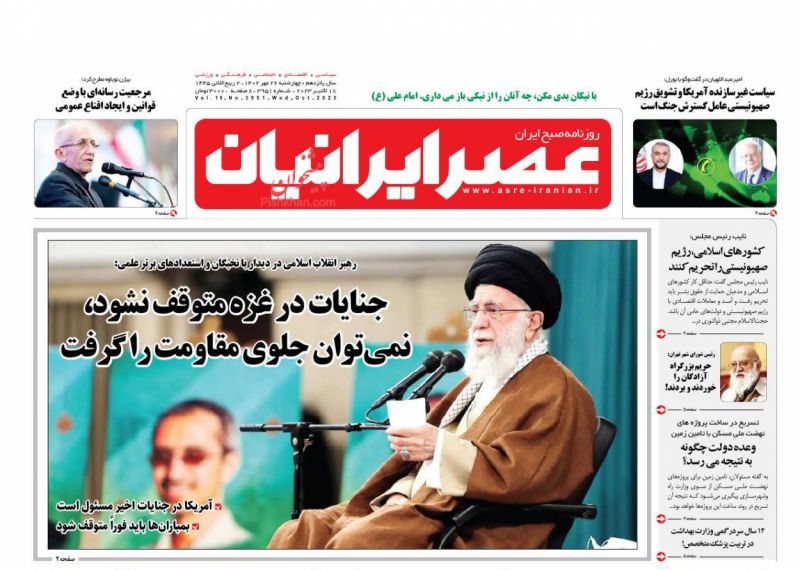 عناوین روزنامههای چهارشنبه ۲۶ مهرماه ۱۴۰۲
