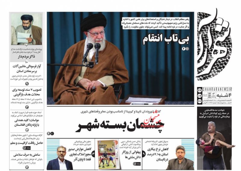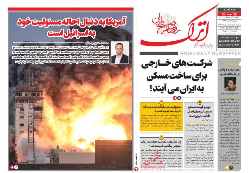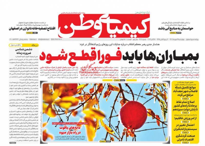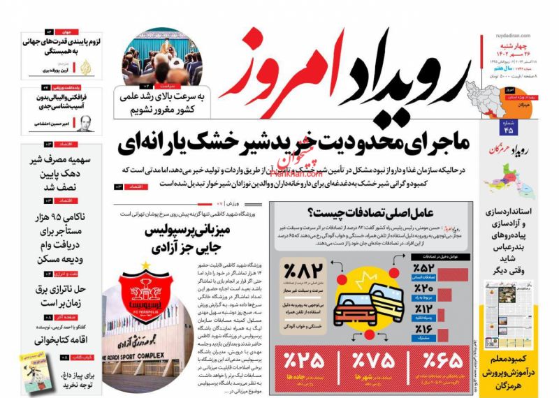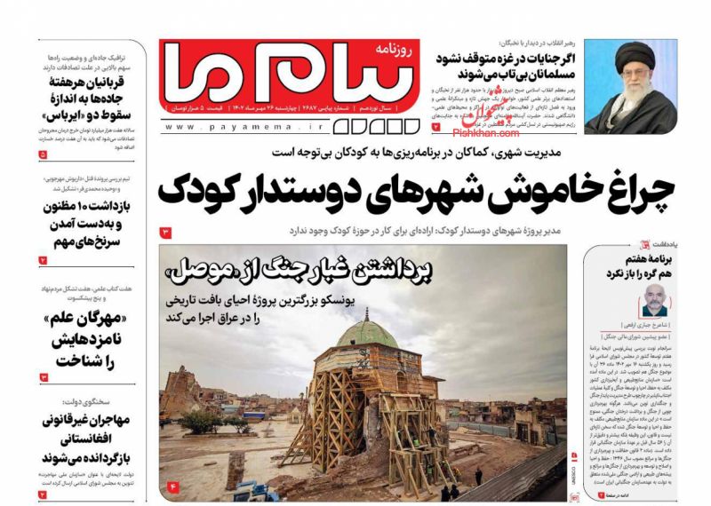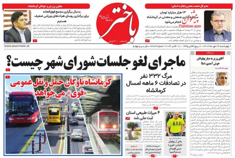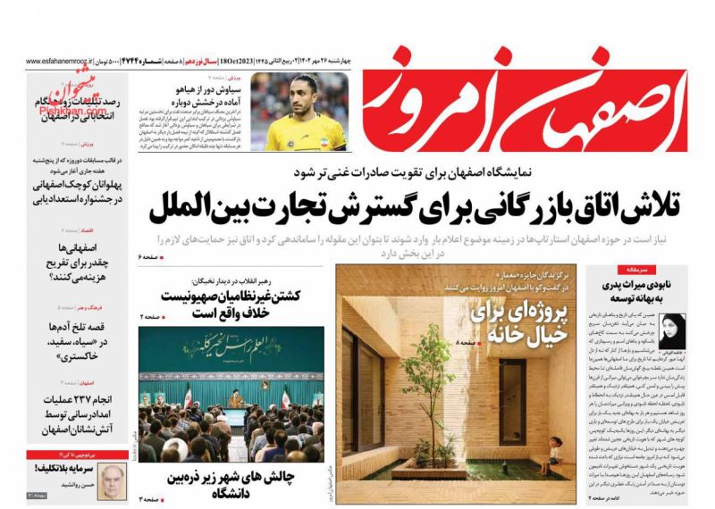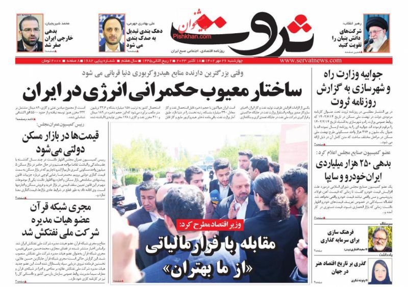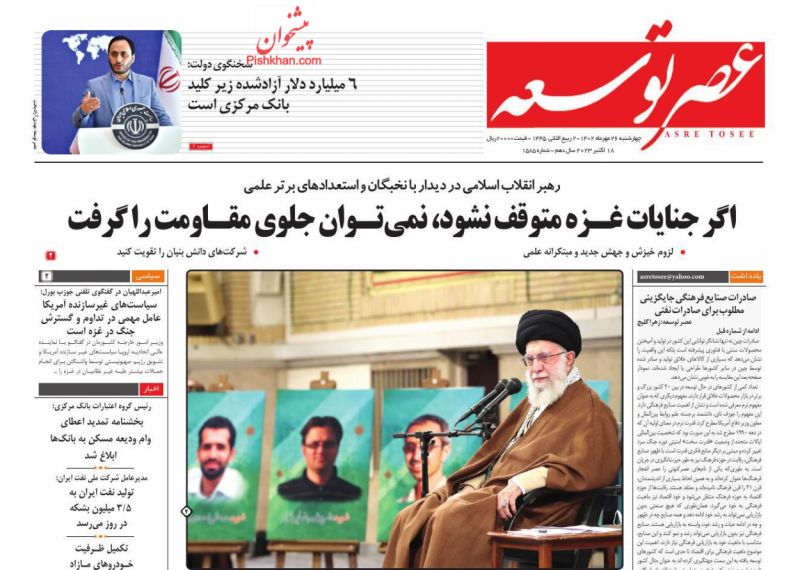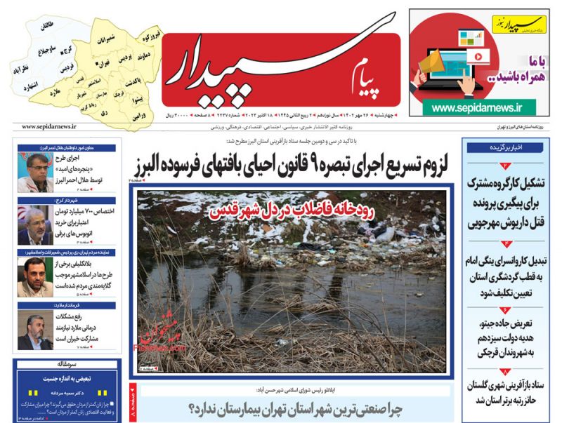 عناوین روزنامههای چهارشنبه ۲۶ مهرماه ۱۴۰۲