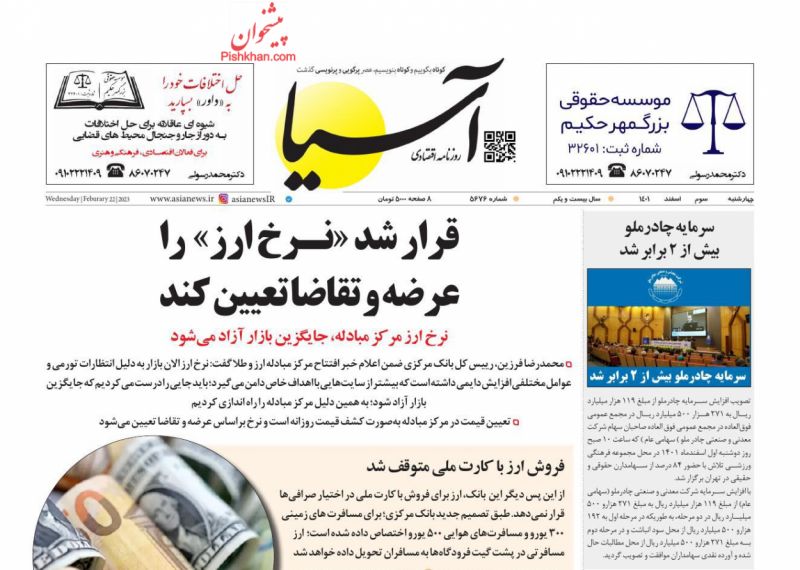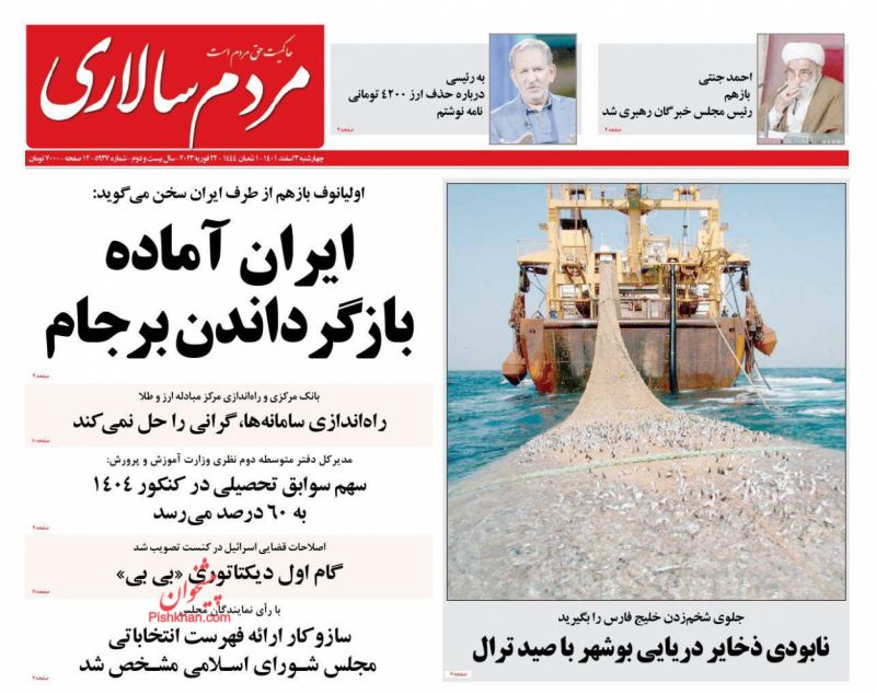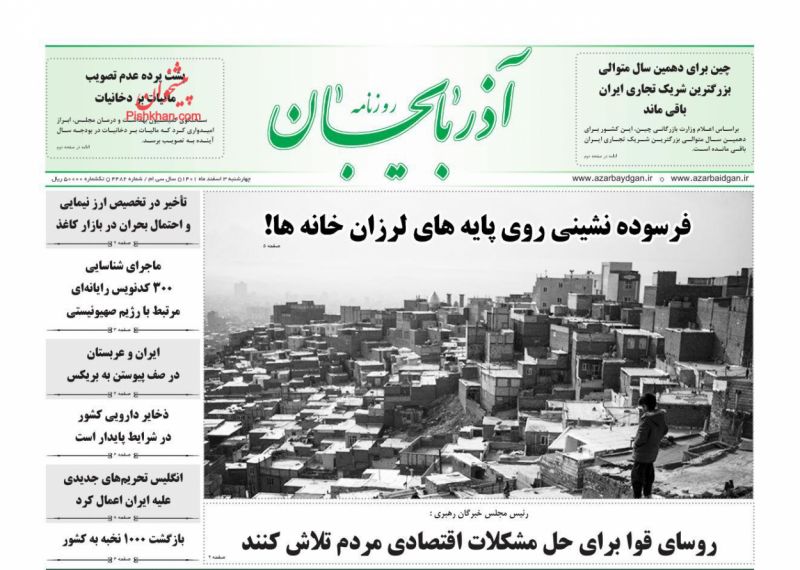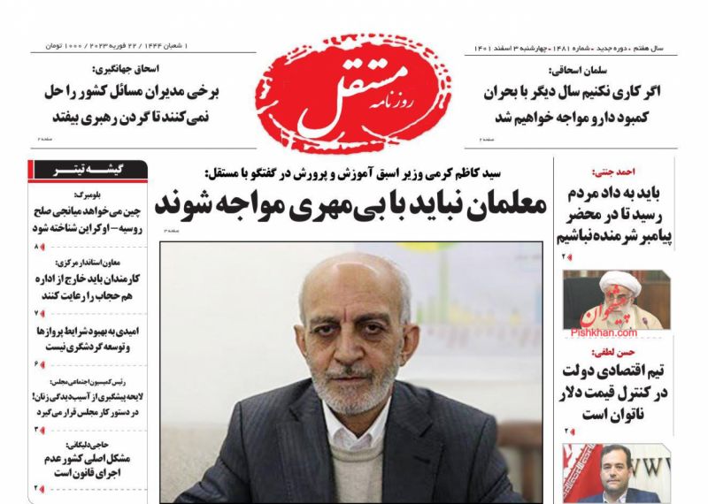 عناوین روزنامه های چهارشنبه ۳ اسفند ۱۴۰۱